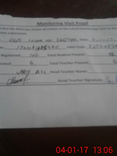 | Attendance Register | Head Teacher | MEA with School | Visit Proof |