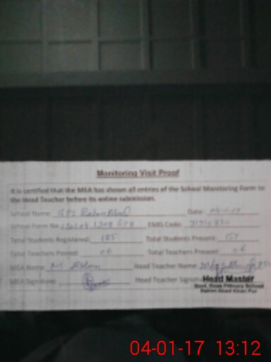 | EMIS Code: 31310830 | Name of School: GPS RAHIM ABAD | |||