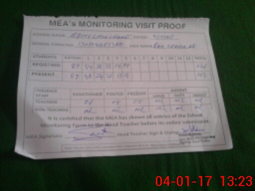 | Attendance Register | Head Teacher | MEA with School | Visit Proof |