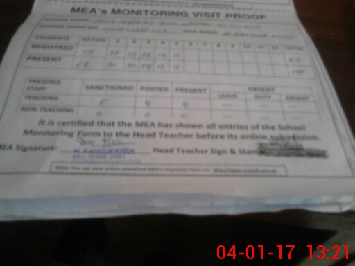| Attendance Register | Head Teacher | MEA with School | Visit Proof |