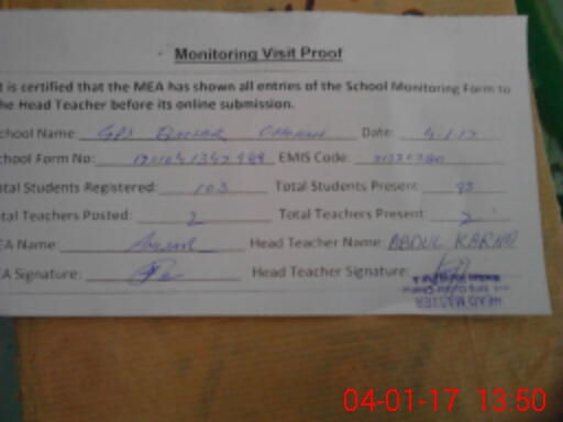 | EMIS Code: 31330380 | Name of School: GPS QAISAR CHOHAN | |||