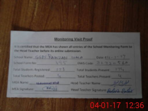 | EMIS Code: 32320560 | Name of School: GGPS RAMZAN WALA | |||