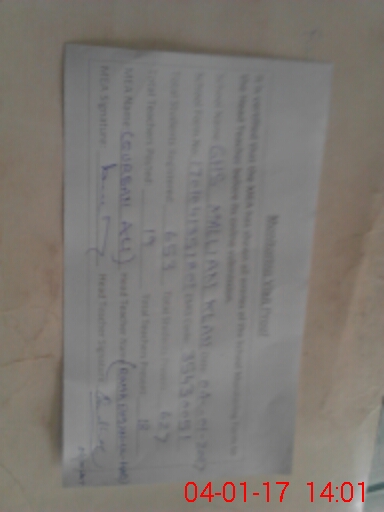 | Certified that this School was Inspected by the Undersigned MEA/DMO Today and the Information Stated Above is as Per Record. | |||||