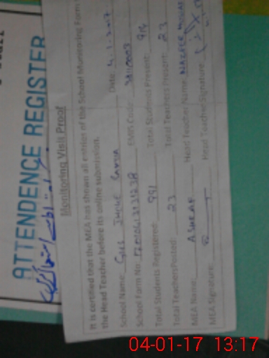 | Attendance Register | Head Teacher | MEA with School | Visit Proof |