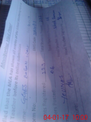 | Name: MI**** Designation: (School Headmaster's/Headmistress's) SSE Phone/Cell Number: 03**** |