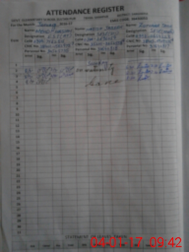 | CNIC | Full Name | Designation | R/C | Absence During Last Calender Month |