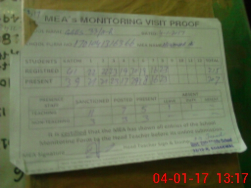 | Attendance Register | Head Teacher | MEA with School | Visit Proof |