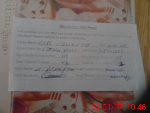 | Attendance Register | Head Teacher | MEA with School | Visit Proof |