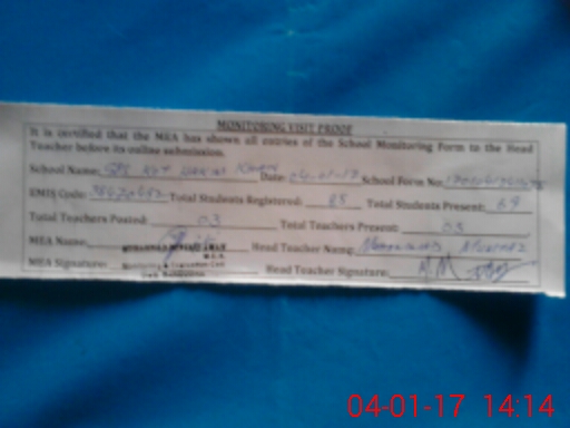 | Attendance Register | Head Teacher | MEA with School | Visit Proof |