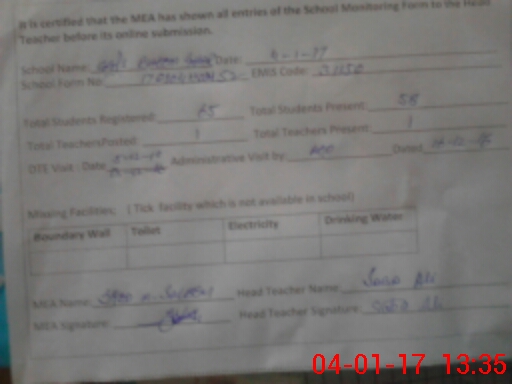 | Certified that this School was Inspected by the Undersigned MEA/DMO Today and the Information Stated Above is as Per Record. | |||||
