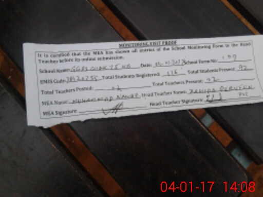 | Attendance Register | Head Teacher | MEA with School | Visit Proof |