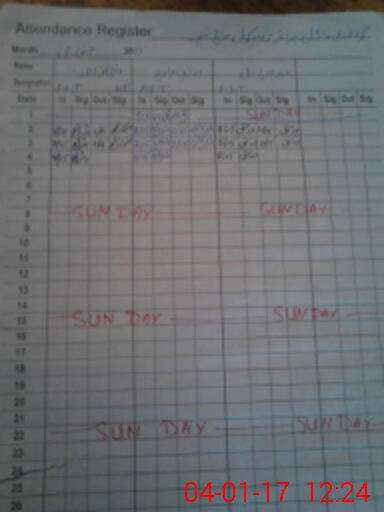 | CNIC | Full Name | Designation | R/C | Absence During Last Calender Month |