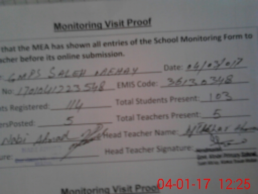 | Attendance Register | Head Teacher | MEA with School | Visit Proof |