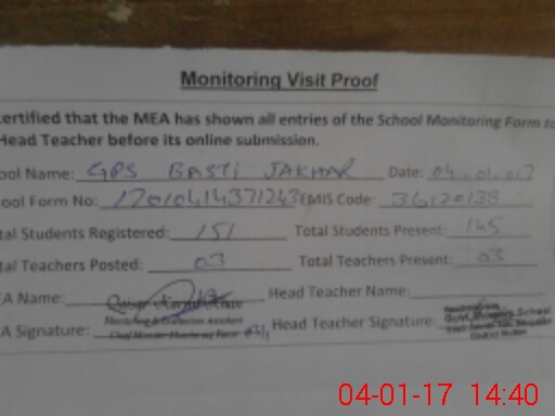 | EMIS Code: 36120138 | Name of School: GPS BASTI JAKHER P/O SIKINDARABAD | |||