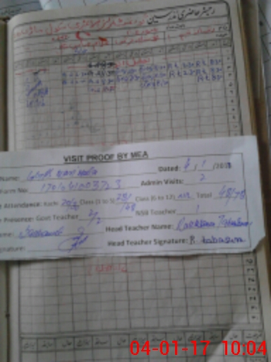 | Attendance Register | Head Teacher | MEA with School | Visit Proof |