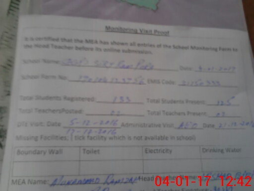 | Certified that this School was Inspected by the Undersigned MEA/DMO Today and the Information Stated Above is as Per Record. | |||||