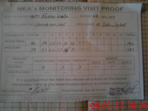 | Attendance Register | Head Teacher | MEA with School | Visit Proof |