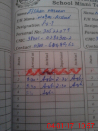 | Name: AF**** NA**** Designation: (School Headmaster's/Headmistress's) PTC/JV Phone/Cell Number: 03**** |