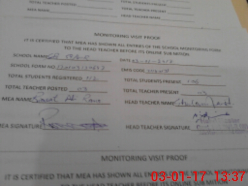 | Certified that this School was Inspected by the Undersigned MEA/DMO Today and the Information Stated Above is as Per Record. | |||||