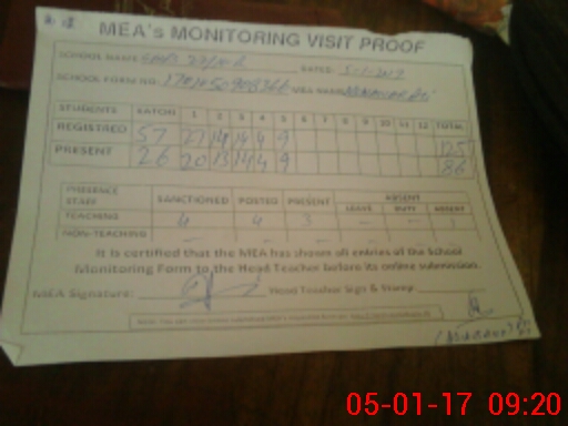 | Attendance Register | Head Teacher | MEA with School | Visit Proof |