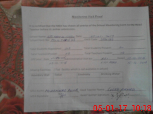 | Attendance Register | Head Teacher | MEA with School | Visit Proof |