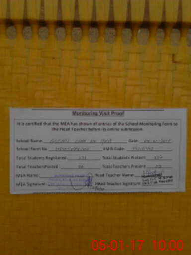 | Attendance Register | Head Teacher | MEA with School | Visit Proof |