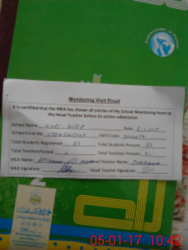 | Attendance Register | Head Teacher | MEA with School | Visit Proof |