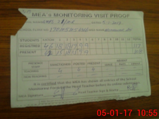 | Attendance Register | Head Teacher | MEA with School | Visit Proof |