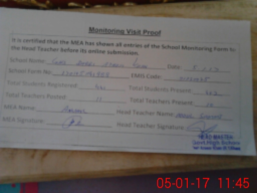 | EMIS Code: 31330025 | Name of School: GHS DARI AZEEM KHAN | |||