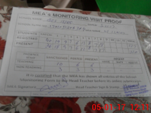 | Attendance Register | Head Teacher | MEA with School | Visit Proof |