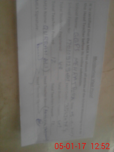 | Certified that this School was Inspected by the Undersigned MEA/DMO Today and the Information Stated Above is as Per Record. | |||||