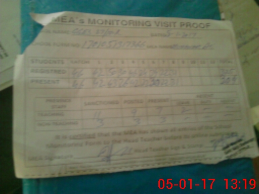 | Attendance Register | Head Teacher | MEA with School | Visit Proof |