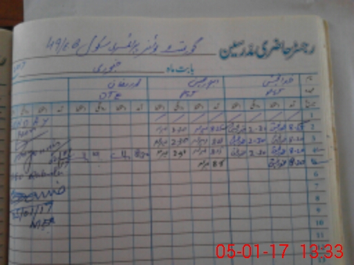| CNIC | Full Name | Designation | R/C | Absence During Last Calender Month |