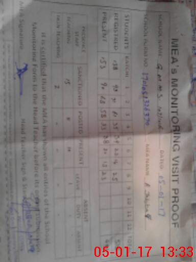 | Monitoring Date: 05-01-2017 | Start Time: 05-01-2017 01:05 PM | End Time: 05-01-2017 01:38 PM | Name of MEA: Ab**** Ja**** (S**** 20**** | |