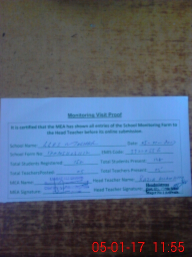 | Attendance Register | Head Teacher | MEA with School | Visit Proof |