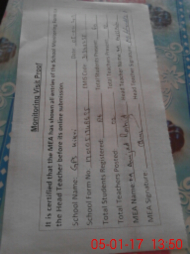 | Certified that this School was Inspected by the Undersigned MEA/DMO Today and the Information Stated Above is as Per Record. | |||||