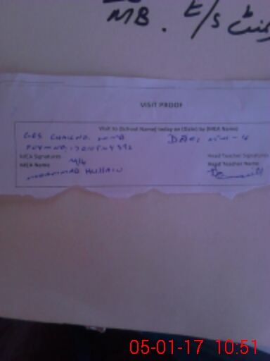 | Attendance Register | Head Teacher | MEA with School | Visit Proof |