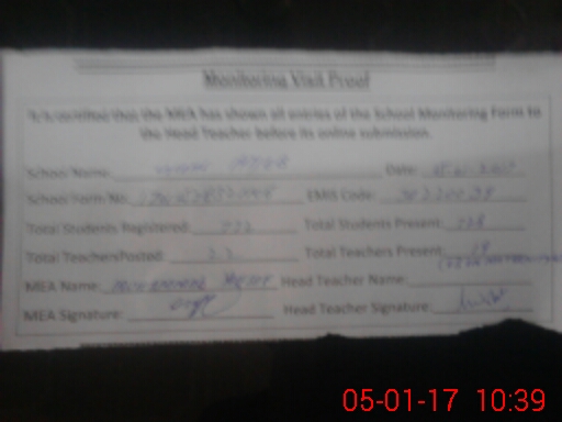 | Attendance Register | Head Teacher | MEA with School | Visit Proof |