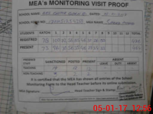 | Attendance Register | Head Teacher | MEA with School | Visit Proof |