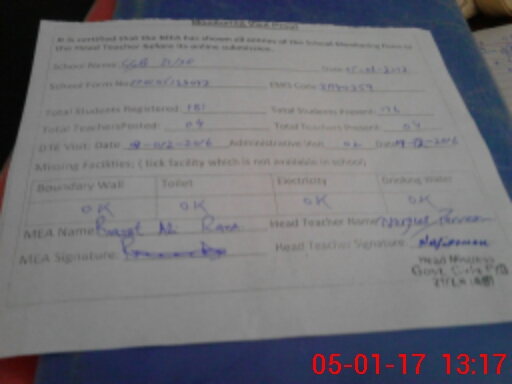| Certified that this School was Inspected by the Undersigned MEA/DMO Today and the Information Stated Above is as Per Record. | |||||