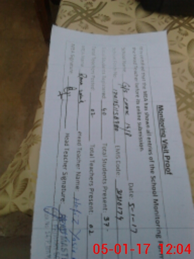 | Monitoring Date: 05-01-2017 | Start Time: 05-01-2017 11:45 AM | End Time: 05-01-2017 12:05 PM | Name of MEA: Mu**** Za**** -KP**** | |