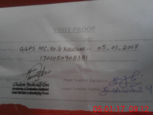 | EMIS Code: 38210547 | Name of School: GGPS MC NO. 4 KHUSHAB | |||