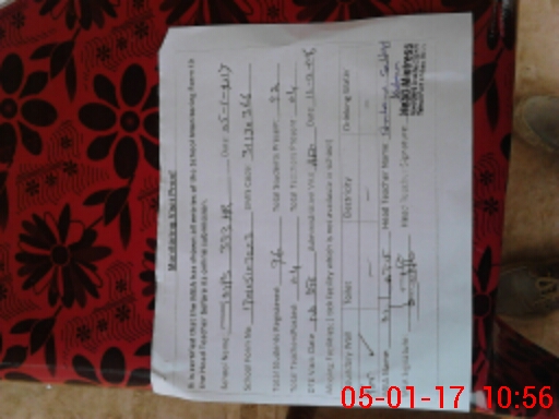 | Remarks (Use Separate Page if Required): ONE NEW CLASS ROOM NOT HANDED OVER TO THE SCHOOL | |||||