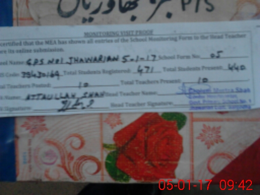 | EMIS Code: 38430169 | Name of School: GPS NO. 1 JHAWARIAN | |||