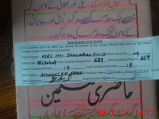 | Attendance Register | Head Teacher | MEA with School | Visit Proof |