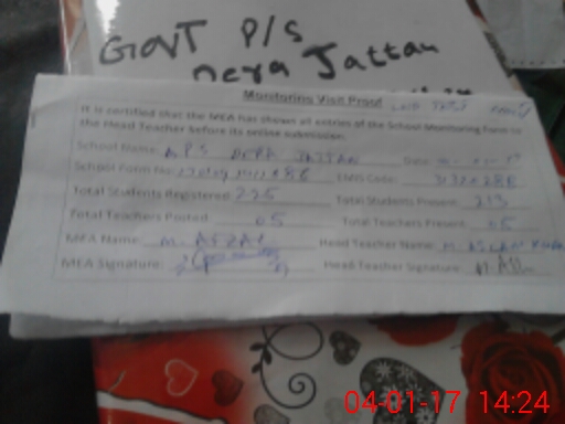 | EMIS Code: 31320288 | Name of School: GPS DERA JATTAN | |||