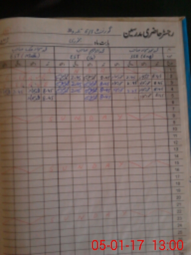 | CNIC | Full Name | Designation | R/C | Absence During Last Calender Month |