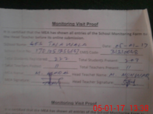 | Attendance Register | Head Teacher | MEA with School | Visit Proof |