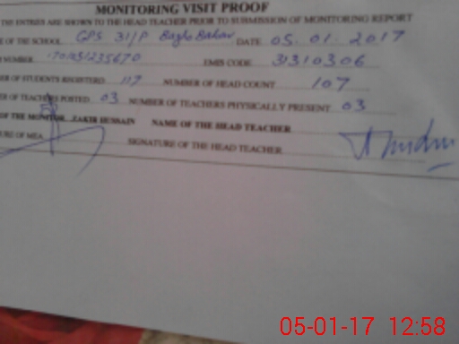 | EMIS Code: 31310306 | Name of School: GPS CHAK NO. 31/P. P.O. BAGHO BEHAR | |||