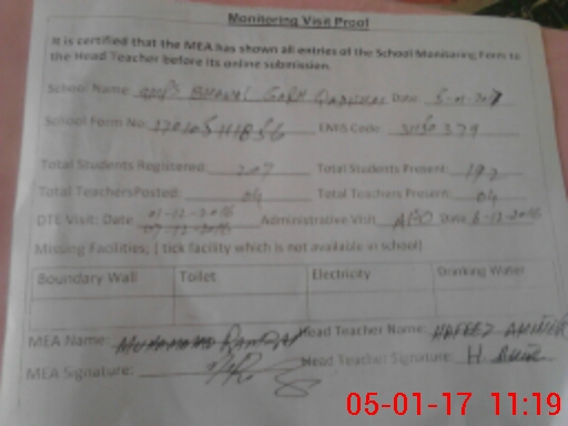 | Certified that this School was Inspected by the Undersigned MEA/DMO Today and the Information Stated Above is as Per Record. | |||||